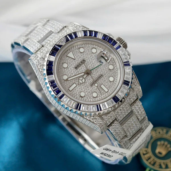 The Rolex Submariner Date 116659SABR is a dazzling reinterpretation of the iconic diver’s watch, combining robust functionality with high-end luxury. Crafted from 18k white gold, the 40mm Oyster case is paired with a breathtaking bezel adorned with alternating sapphires and diamonds, creating a gradient effect that mirrors the ocean’s hues.